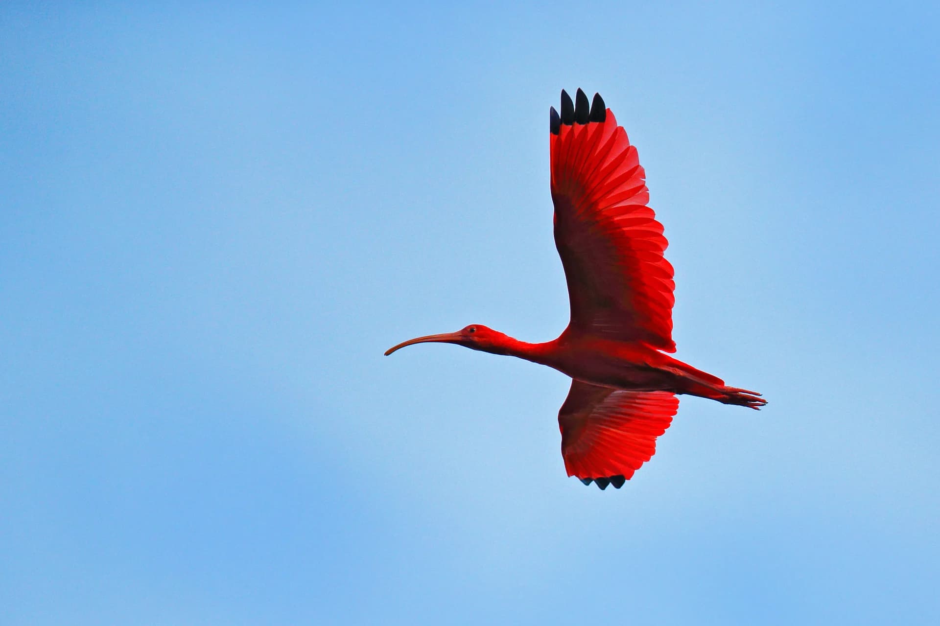 A bela ave chamada guará com sua plumagem vermelha brilhante pode ser vista às centenas ao pousar ao pôr do sol em um espetáculo raro e inesquecível (o avistamento de animais depende de vários fatores naturais combinados).
