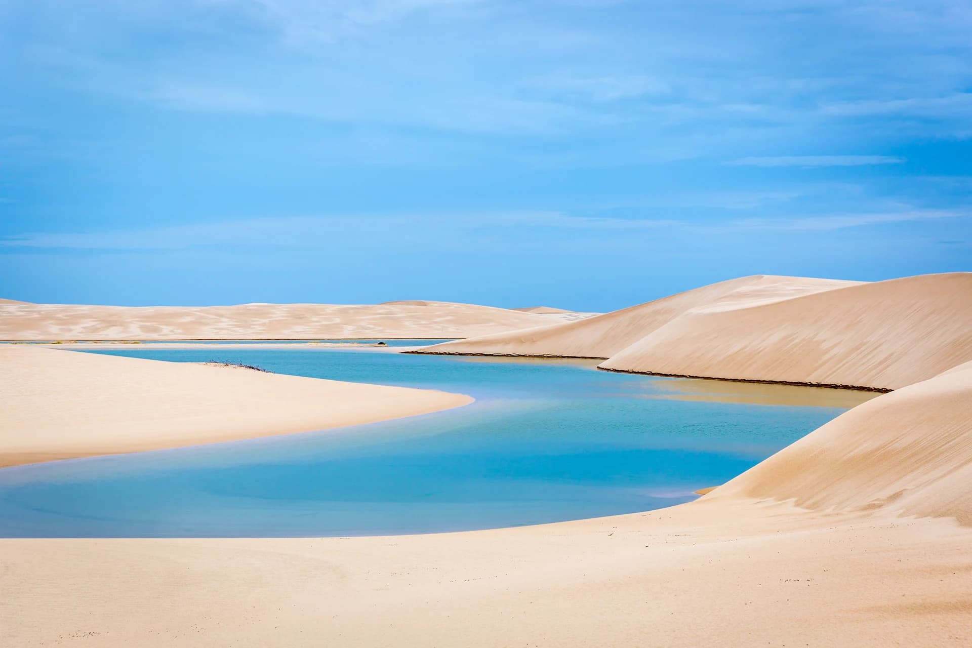 Subiremos a duna que nos proporcionará uma vista esplendorosa dos Lençóis, tendo a nossos pés a magnífica Lagoa das Gaivotas. Vale a pena passear pelas dunas e nadar nas águas translúcidas à espera do fantástico pôr-do-sol. Pernoite em Santo Amaro.